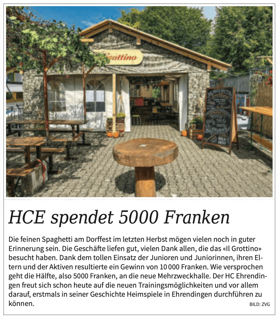 Vielen Dank HC Ehrendingen! Für das feine Il Grottino und die grosszügige Spende. Wir freuen uns auf die ersten Heimspiele! Aus der Rundschau Nord, 26. März 2026: